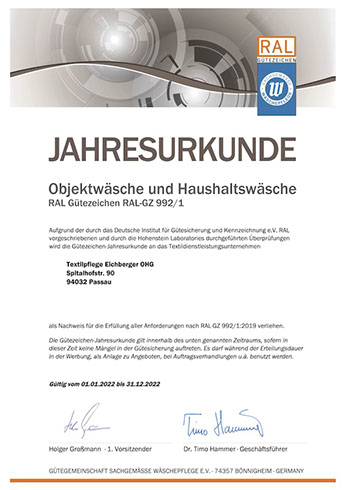 ➜ RAL 992/1 für Objekt- und Haushaltswäsche